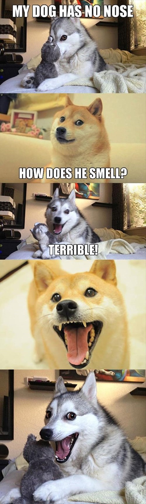 6 reasons your dog smells bad. I like to help dog parents find unique ways to do things that will save time money so i write about outside the box dog tips and dog hacks that most wouldn t think of. Browse and add captions to bad pun dog memes. No matter how much you love your dog it is hard to love a dog s stinky scent especially if she enjoys rolling in dead animal remains or munching on excrement. I m a lifelong dog owner currently have 2 mixed breed golden aussies that we found abandoned on the side of the road as puppies.