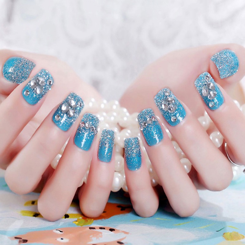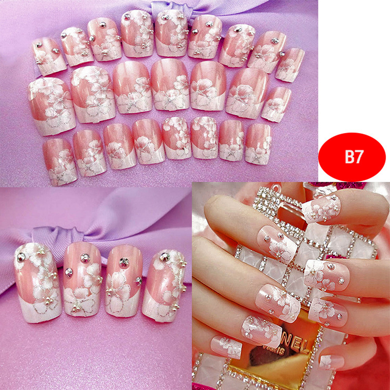 Barode Kunstnagel Glitzer Strass Perlen Blume Fake Nagel Einfache