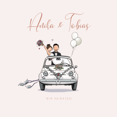 Rosa Hochzeitseinladung Mit Brautpaar Im Hochzeitsauto