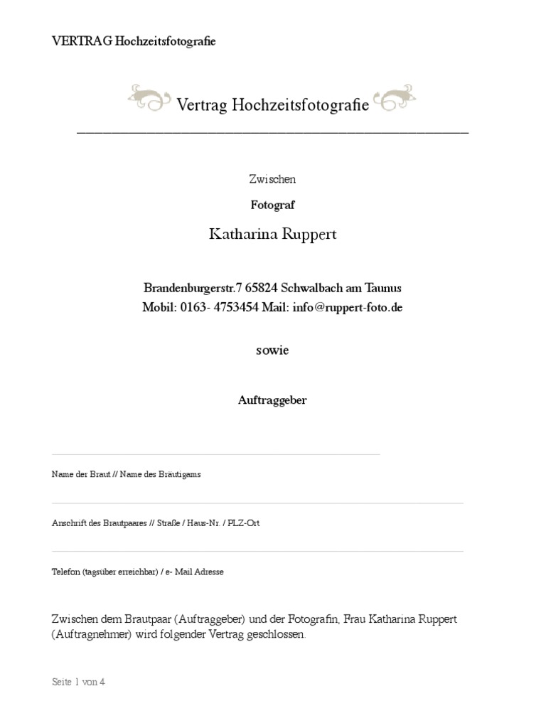 1 unverbindliches vertragsmuster für hochzeitsfotografie hochzeitsreportage zwischen der dem fotografen in in der folge auftragnehmer in genannt. Von pros für pros. Jeder fotograf hat seinen eigenen künstlerischen stil. Der fotograf erstellt die fotografien und hat sie dem auftraggeber danach zur verfügung zu stellen. Der beitrag ist leicht gekürzt erschienen in photopresse 08 2018 s. Eine hochzeit ist ein event was nicht wiederholt werden kann und da ist ein vertrag einfach unerlässlich. Umfassend erzähle ich wie ich die kita fotografie über das kalenderjahr gestalte.